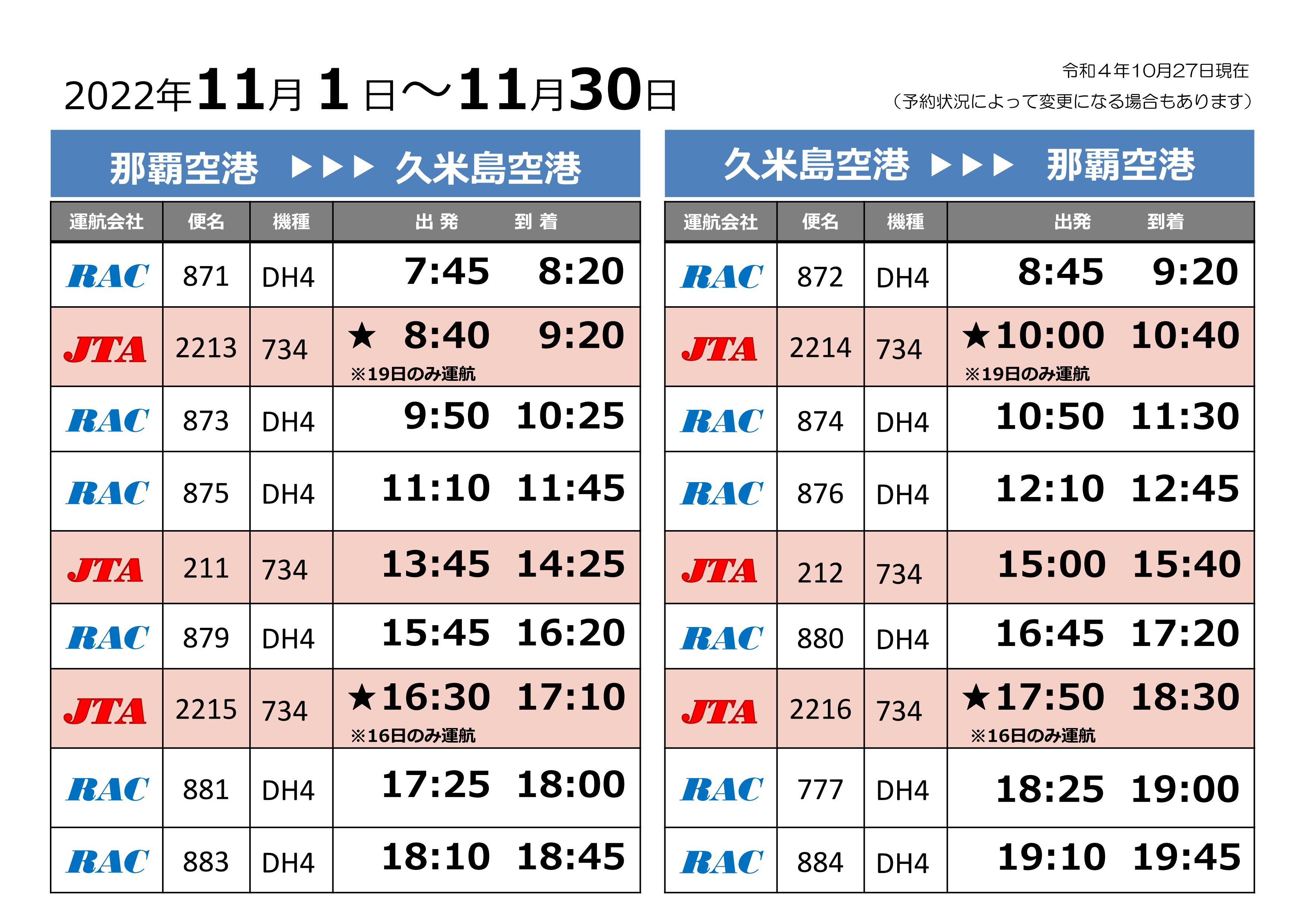 Home > 新着情報一覧 > フライト情報更新 2022年11月1日~11月30日まで